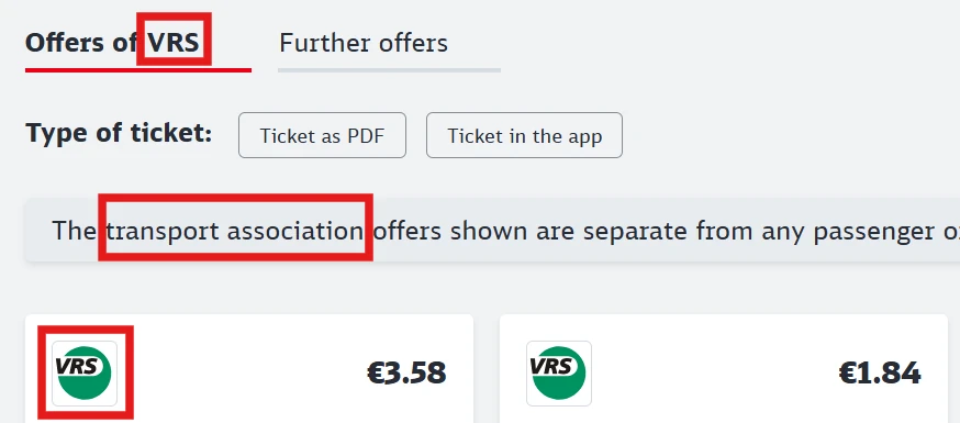 Example for Transport Associations on Bahn.de